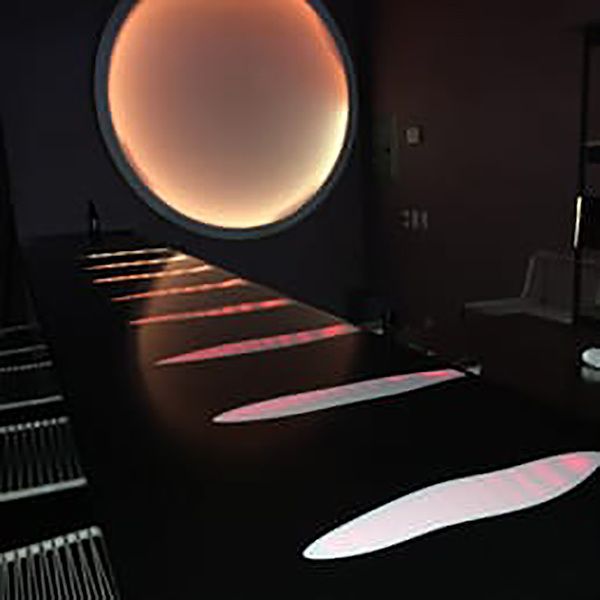 Dead or Alive Bar >> Clients Anthony Cioffi and Christine Soto >> Materials _ electronics _ interior _ lighting _ solid surface _ fabric Corian bar with embedded and programmed color shifting LED's calculated on an azimuth sun table. electronics interior lighting solid surface fabric