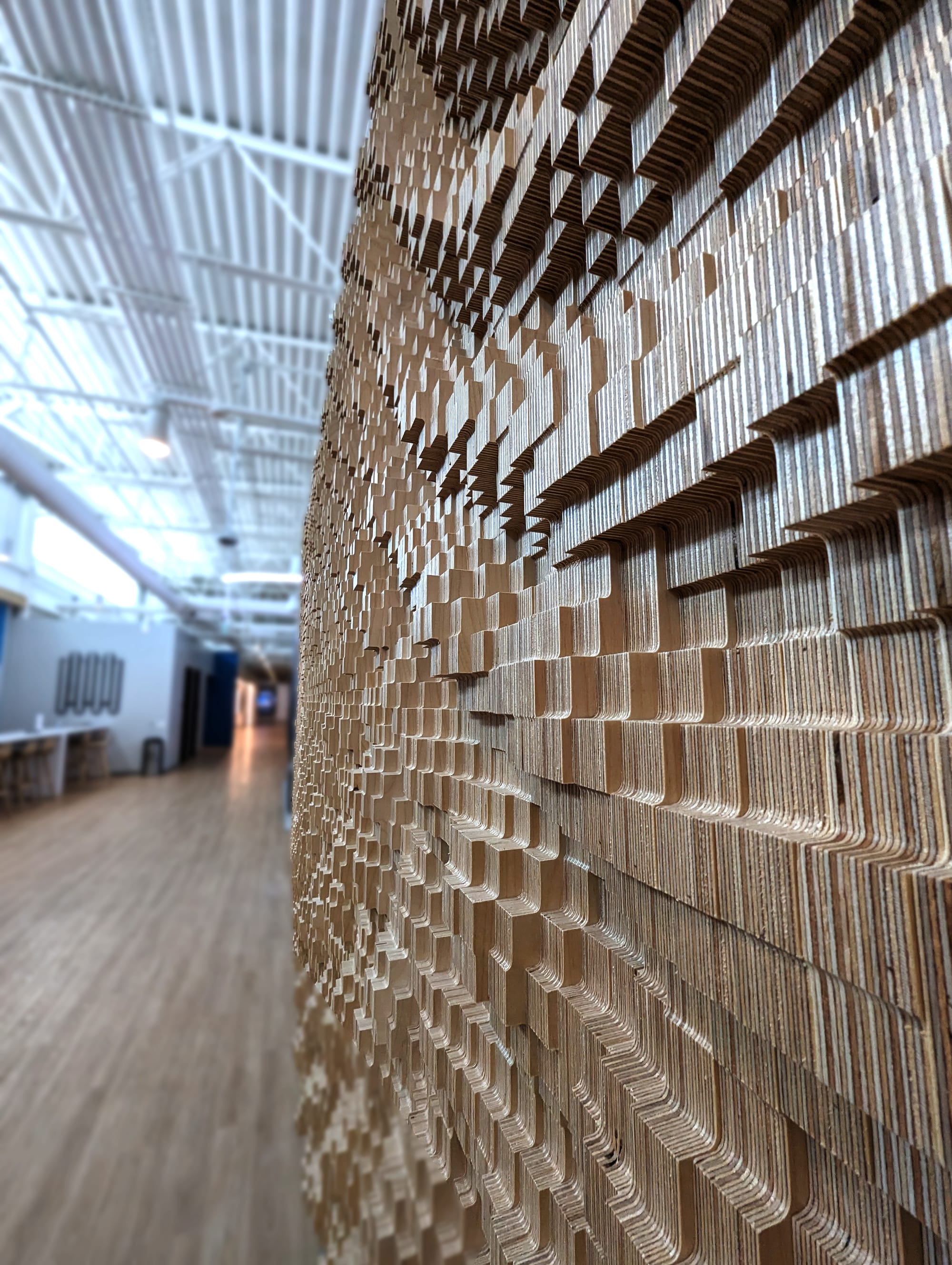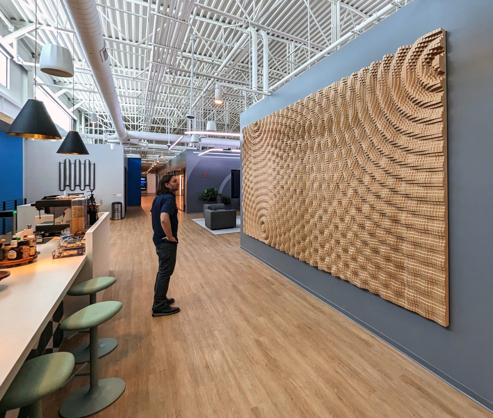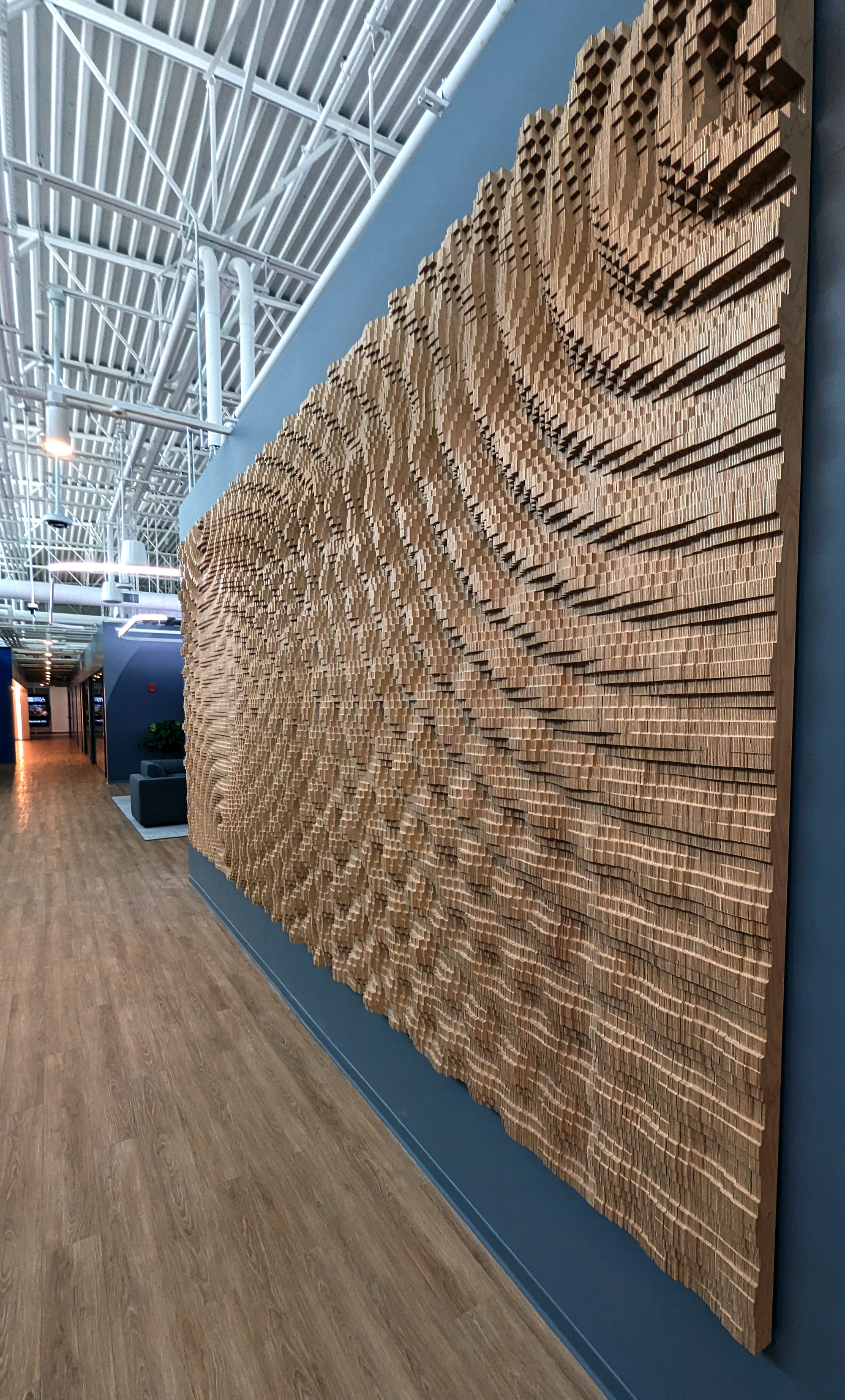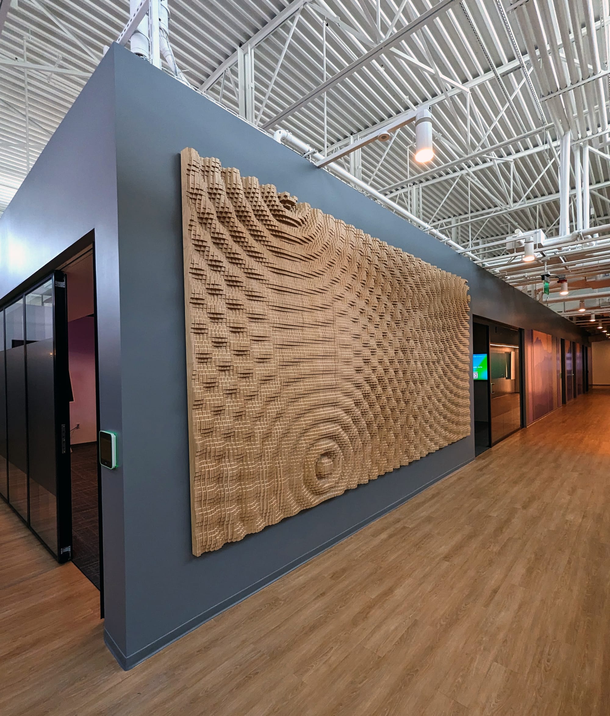 For this project, we designed a custom wood artwork wall for Ripple Effect Studios / EA Games at their Marina Del Rey campus.