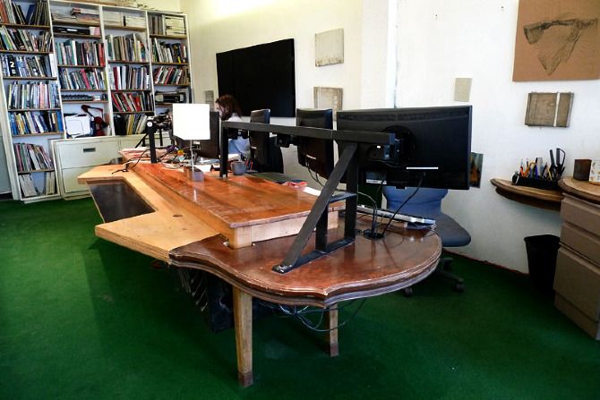 Office Desk >> Clients MachineHistories >> Materials _ furniture _ plywood _ hardwood _ recycled The control center at MachineHistories furniture plywood hardwood recycled